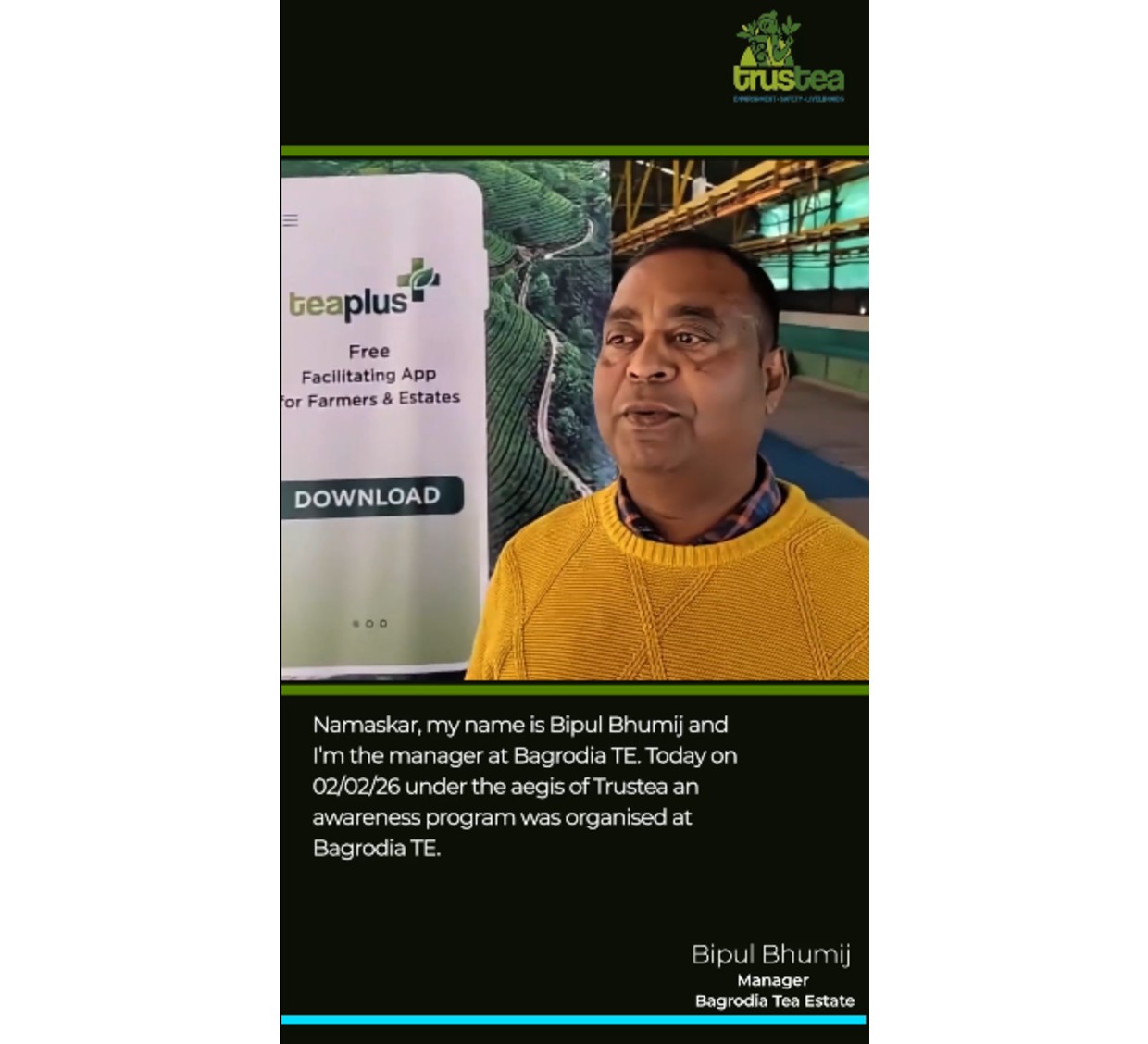 Impact made by trustea training – testimonial from manager, Lekhapani Tea Company